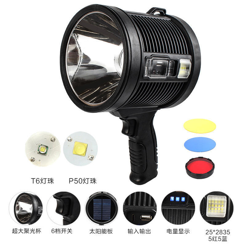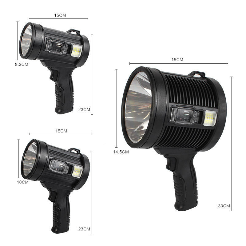 Projecteur extérieur Luyao P70 30W LED rechargeable avec lumière latérale, lampe de poche haute puissance ultra-lumineuse