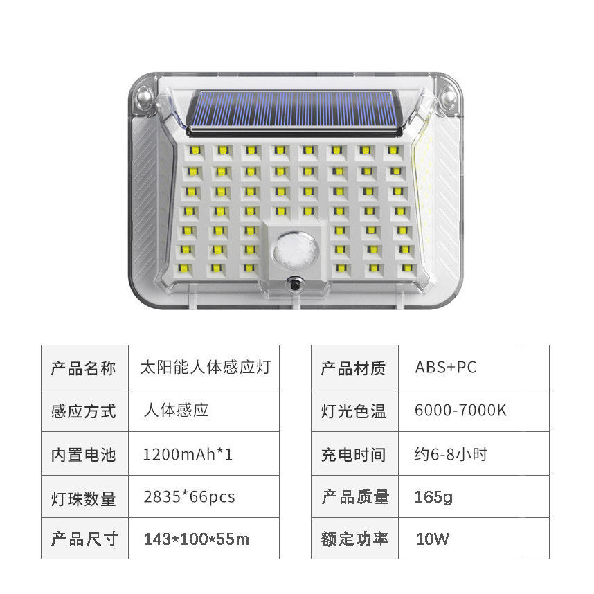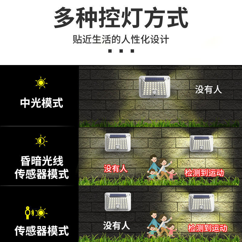 Lampe murale solaire Ly à 90 LED 10W avec détecteur de mouvement, étanche, pour extérieur, cour