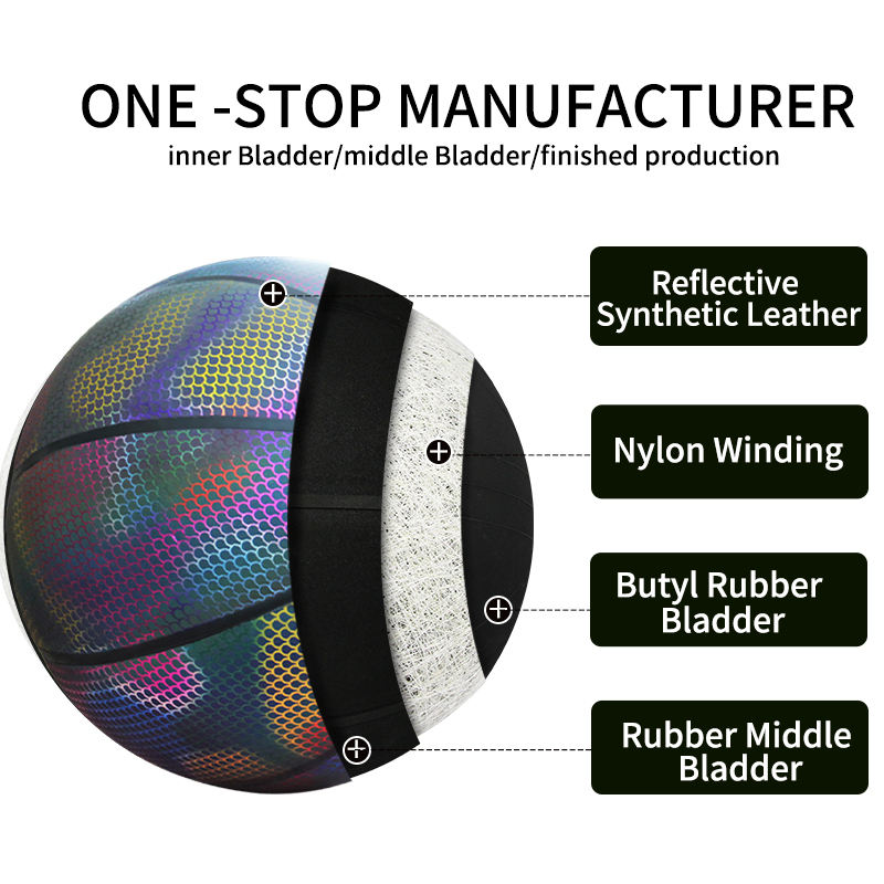 Ballon de basket réfléchissant supérieur Lydoo, taille 6/7, ballon de basket lumineux, utilisation jour et nuit, fabricant OEM, taille personnalisée 7