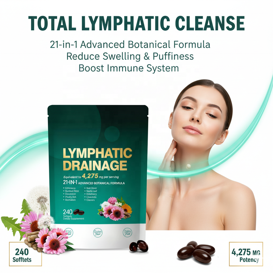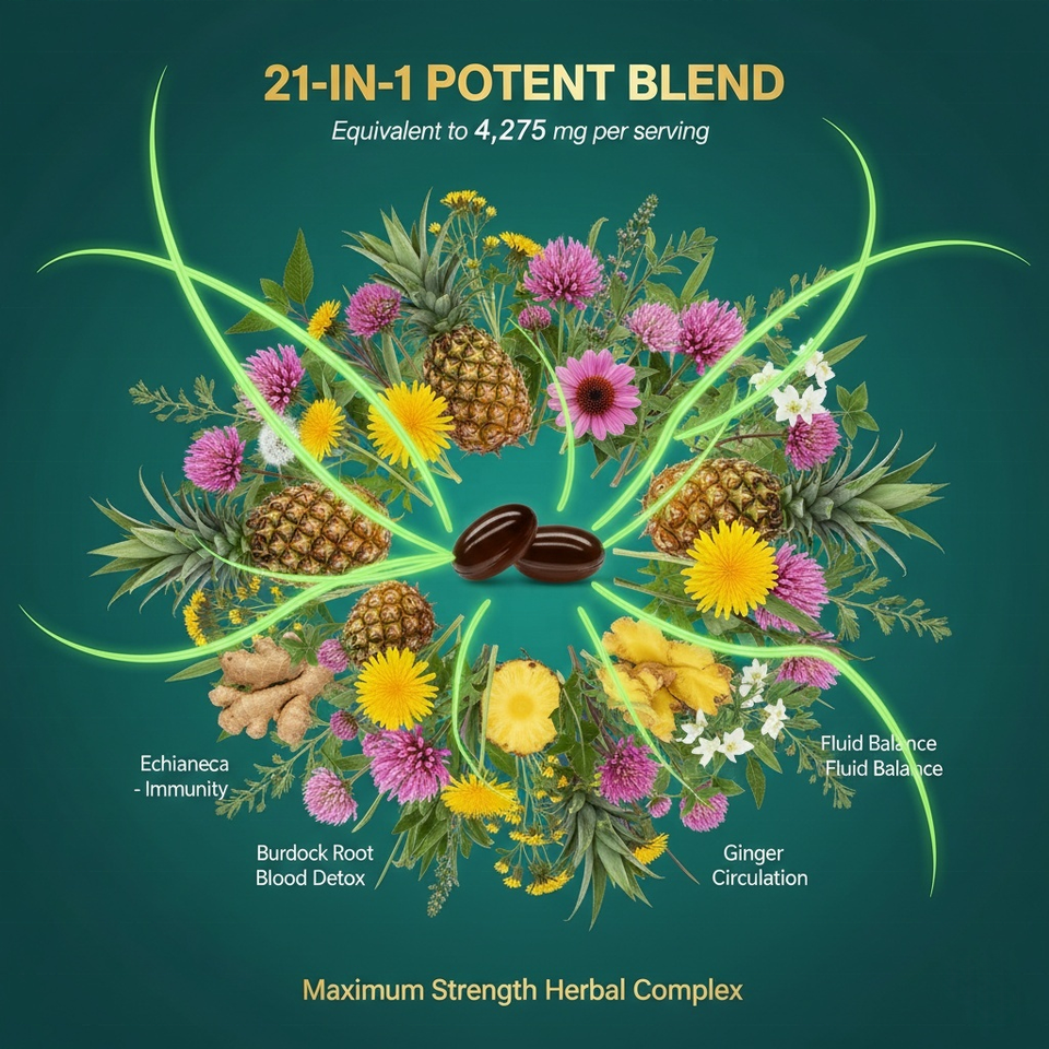 Complément de drainage lymphatique 21-en-1, formule à base de plantes, 4275 mg, capsules de gel mou détoxifiantes antioxydantes pour le soutien immunitaire des adultes