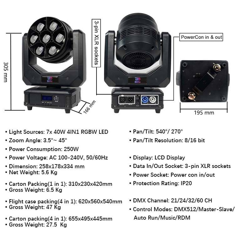 Nom du produit:Lavage principal mobile de 7X40W LED