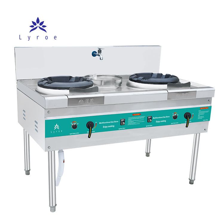 Lyroe Cuisinière à gaz professionnelle en acier inoxydable améliorée pour restaurant, brûleur de wok commercial pour cuisine chinoise