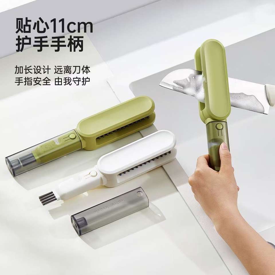 Brosse de nettoyage 3-en-1 M pour couteaux, spatules, baguettes, couverts, fourchettes et cuillères, avec brosse à poils double face pour lave-vaisselle