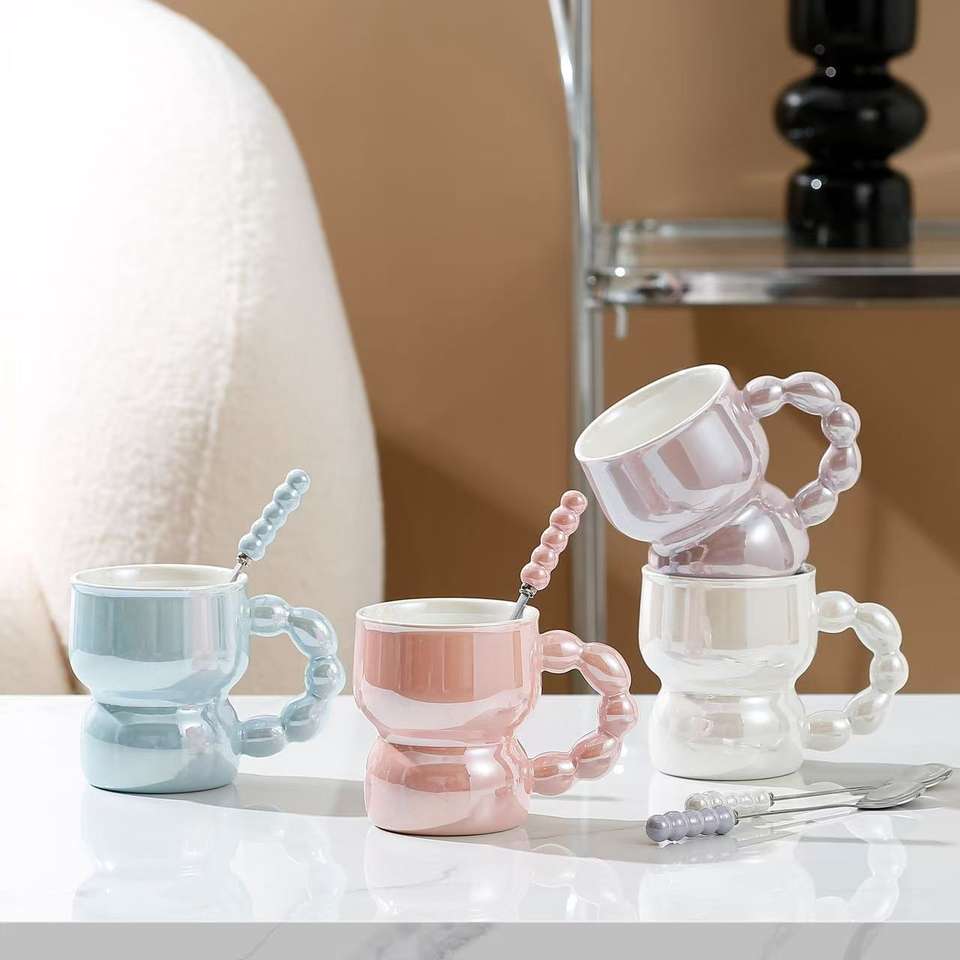 M 300ml Perle Poignée en Céramique Tasse Colorée Tasses à Café Petit Déjeuner Tasse à Lait Haute Beauté Couple Paire Tasses Foule Cadeau d'Anniversaire