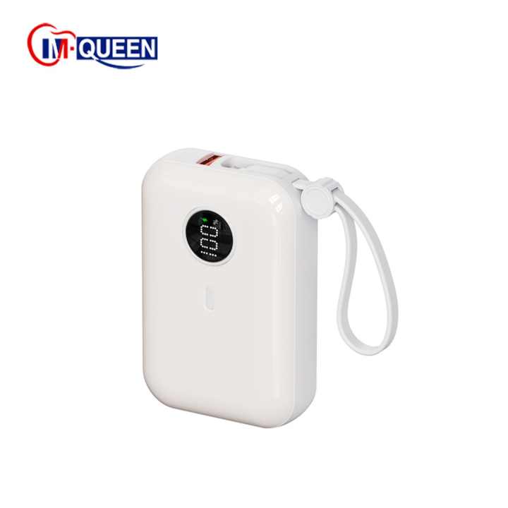 Batterie externe portable personnalisée M-Queen 10000 mAh pour téléphone, charge rapide personnalisée avec câble intégré