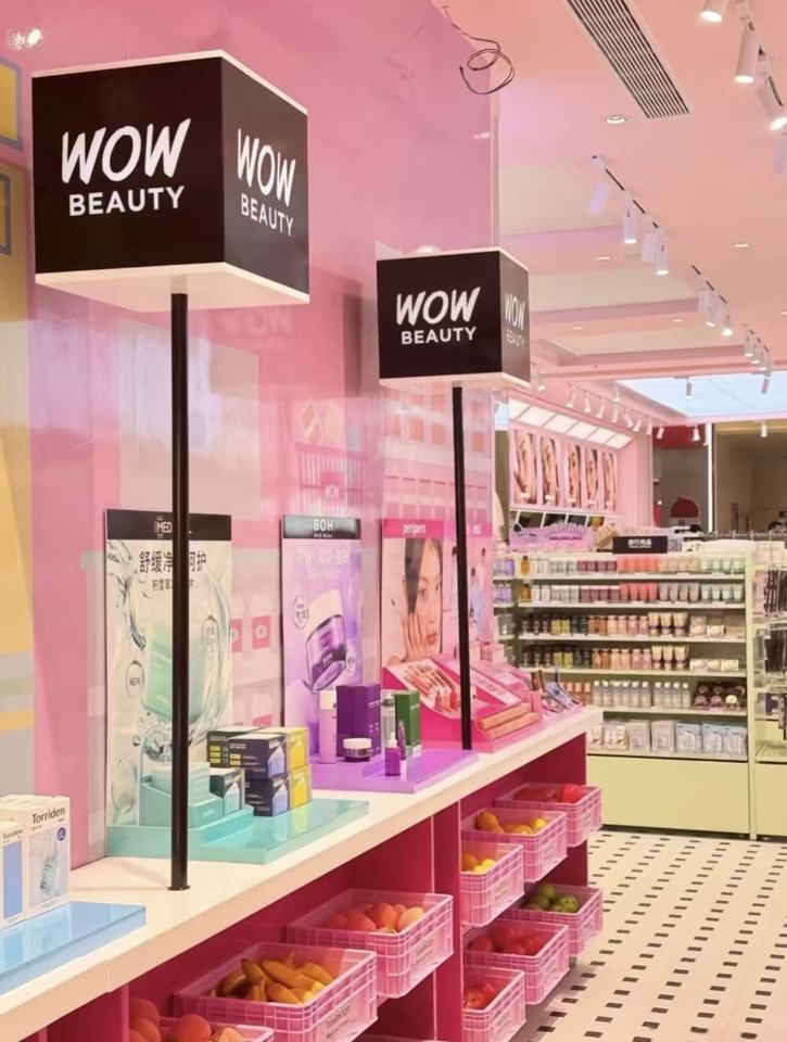 M & S Vitrine cosmétique à éclairage LED rose haut de gamme sur mesure pour la décoration intérieure des magasins et idées de décoration personnalisées