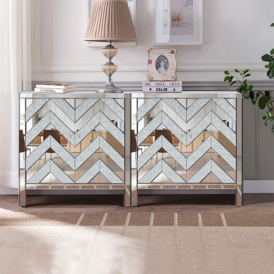 M Shape Design Spliced Combination Storage Cabinet with Mirror Trim for Living Room Dining Room Entryway Kitchen