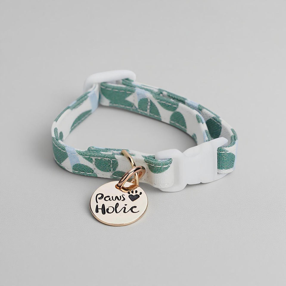 Collier pour chien en coton doux et respirant, taille M, imprimé menthe moderne, personnalisé, confortable, durable, accessoire de promenade léger