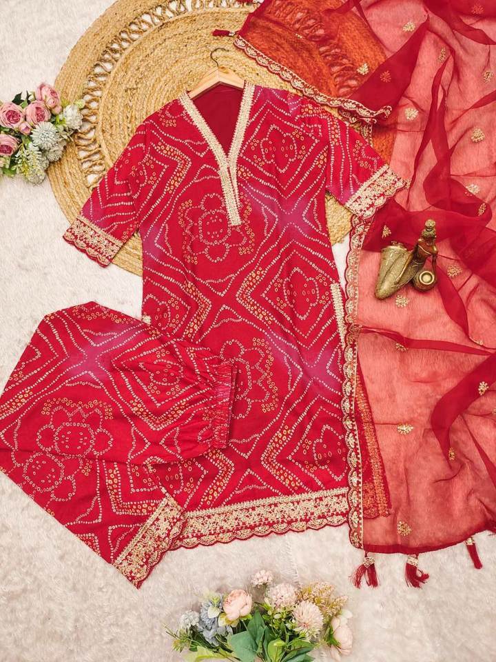 Taille M à 3XL, magnifique couleur, imprimé Bandhni, style culturel gujarati, manches 3/4, motif traditionnel, salwar kameez pour femmes