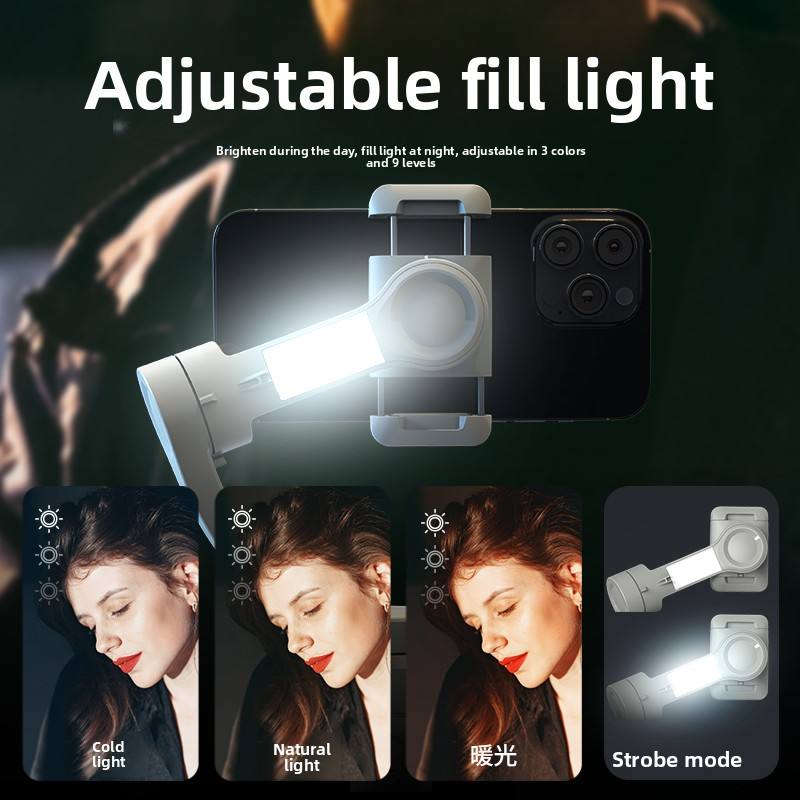 Bâton intégré de Selfie, Suivi de l'AI, 3 Axe, Avec Led, Lumière de remplissage magnétique, Bras articulé double, Stabilisateur à cardan 3 axes avec lumière LED et kit microphoneCaractéristiques