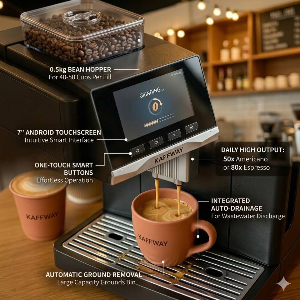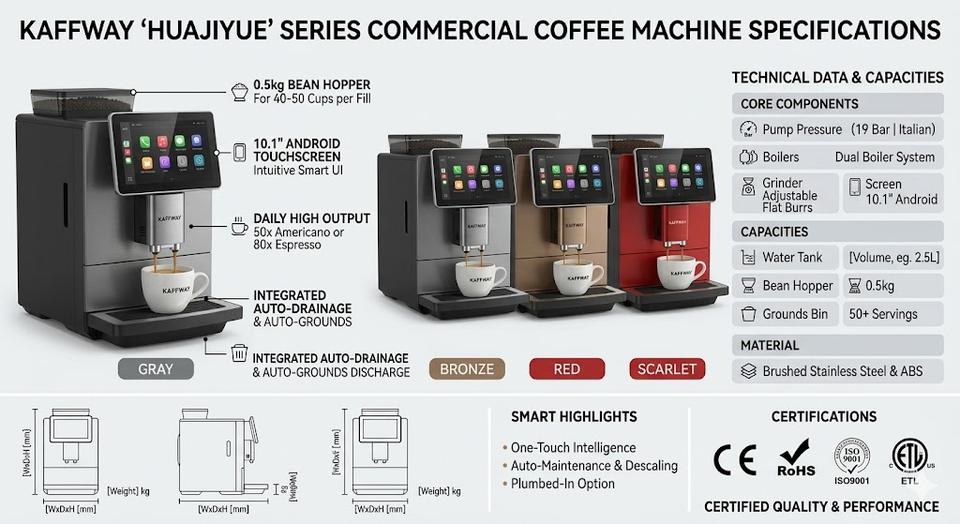 Machine à café expresso entièrement automatique M1, pour la maison et le bureau, intelligente, WiFi, broyeur intégré, 19 bars, écran tactile, double chaudière, en acier inoxydable
