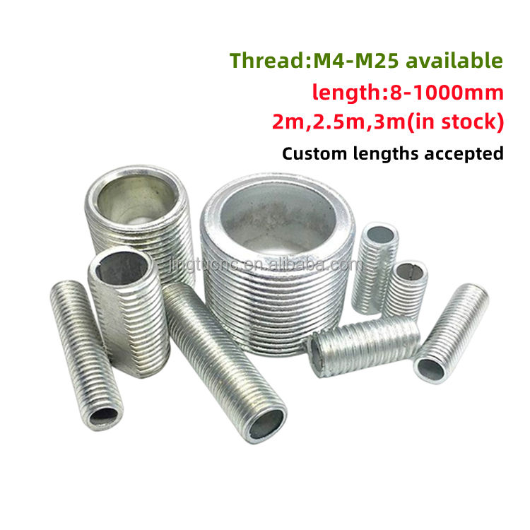Tube de fixation pour luminaire en acier zingué fileté M10x1, tube creux entièrement fileté pour luminaires