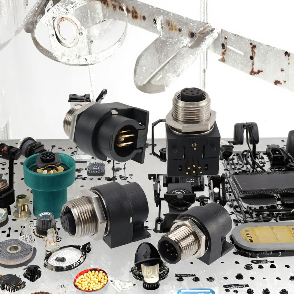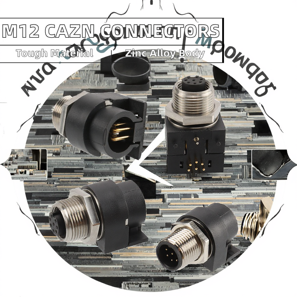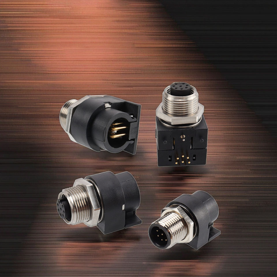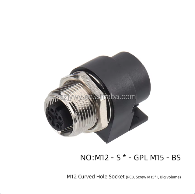 M12 Douille à trou incurvé coudé 2P B D Connecteurs mâle femelle Grand volume Supports de panneau en métal PCB à 90 degrés