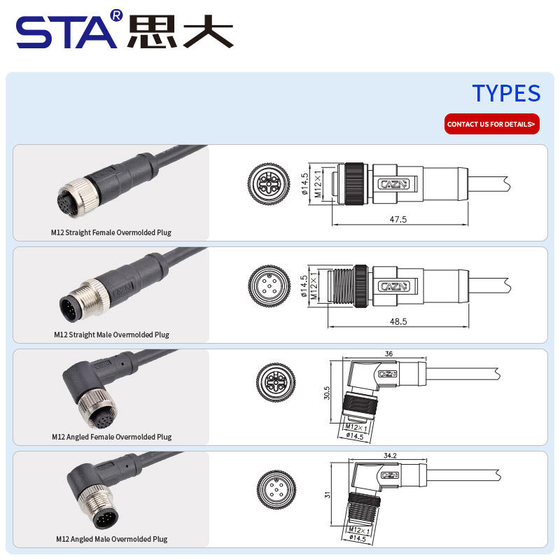 M12 Aviation Plug 2 3 4 5 6 8 12 17 broches droite Angle droit femelle mâle surmoulé connecteur PVC PUR câble d'extension