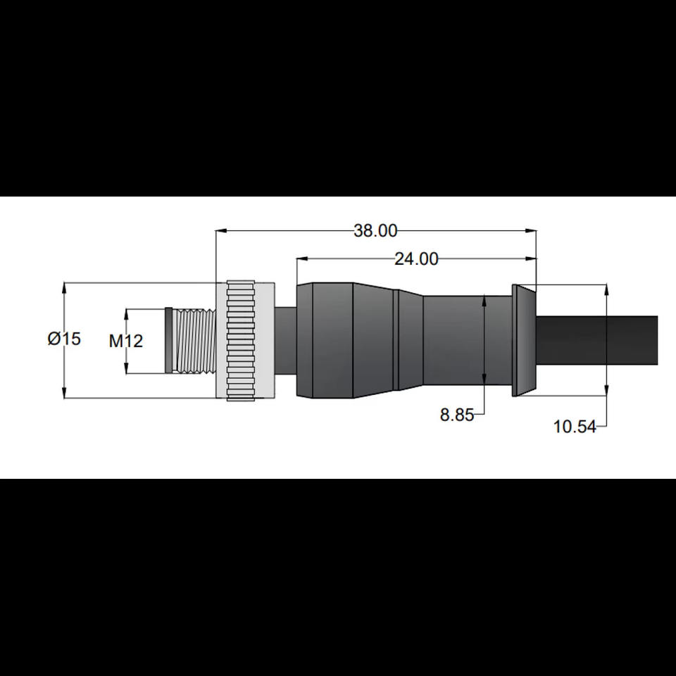 Nom du produit:Câble noir M12 mâle, code A, 4 broches, PVC non blindé, 4x0,34, 3 mètres