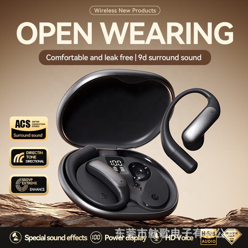 Écouteurs M129 Minimalisme Ultra-fins OWS Ouverts à l'oreille, Écouteurs à crochet d'oreille TWS, Basses profondes, Réduction de bruit, Écouteurs sans fil