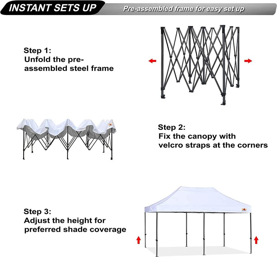 M2 Tente à Auvent Pop-up Ignifuge 10X20 Étanche Auvent Pliant Patio Ombre Abri Gazebo Tente 6x3