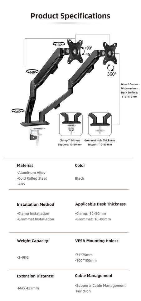 Nom du produit:Support de support de support de bras de moniteur de ressort à gaz de bureau