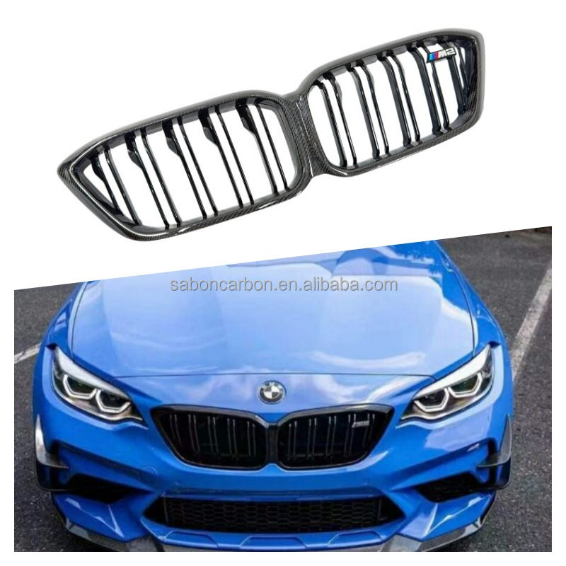 Grille avant M2C en fibre de carbone style MP, double lamelle, monobloc pour BMW F87 M2 Competition