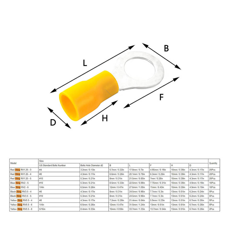 Included Components:320 Ring Terminal Connectors