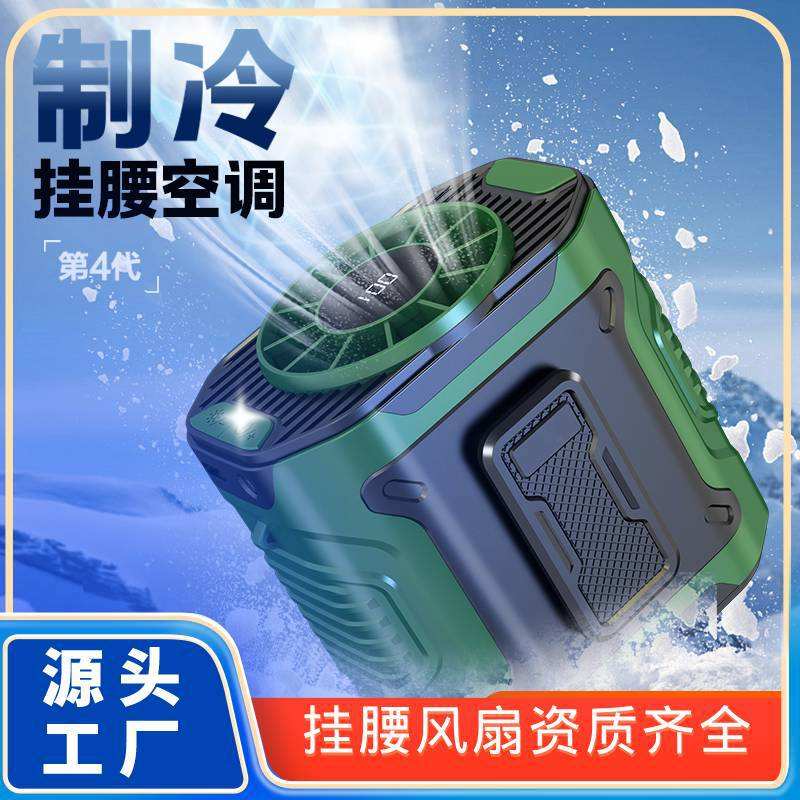 Ventilateur portable M360 à fixer à la ceinture avec lumière, batterie rechargeable, moteur DC, 6-8 heures d'autonomie, vert militaire, orange lave