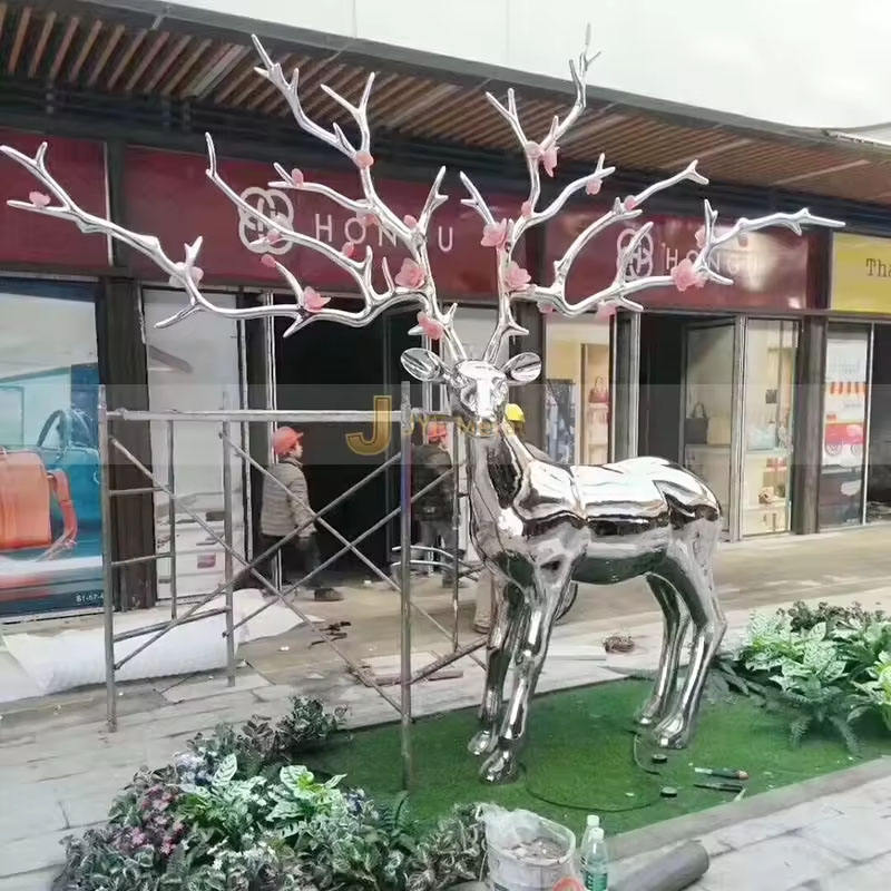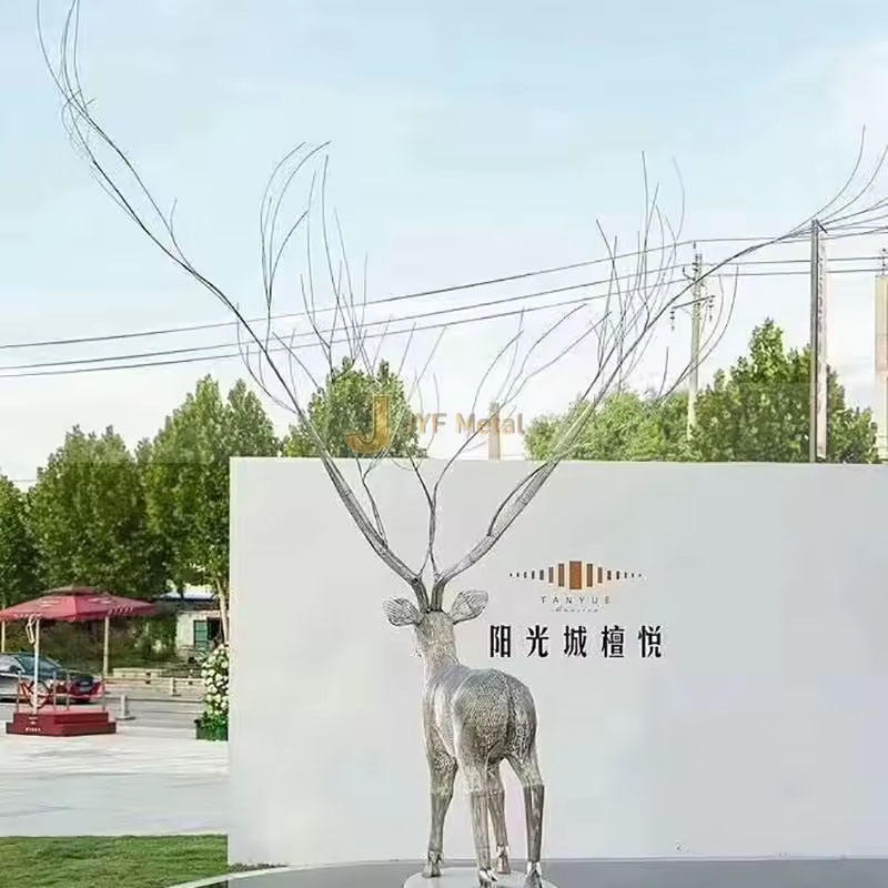 JYFMETAL M37 Grande statue d'extérieur en acier inoxydable 316, design moderne, sculpture d'art de jardin, animal cerf, épaisseur 3-10 mm