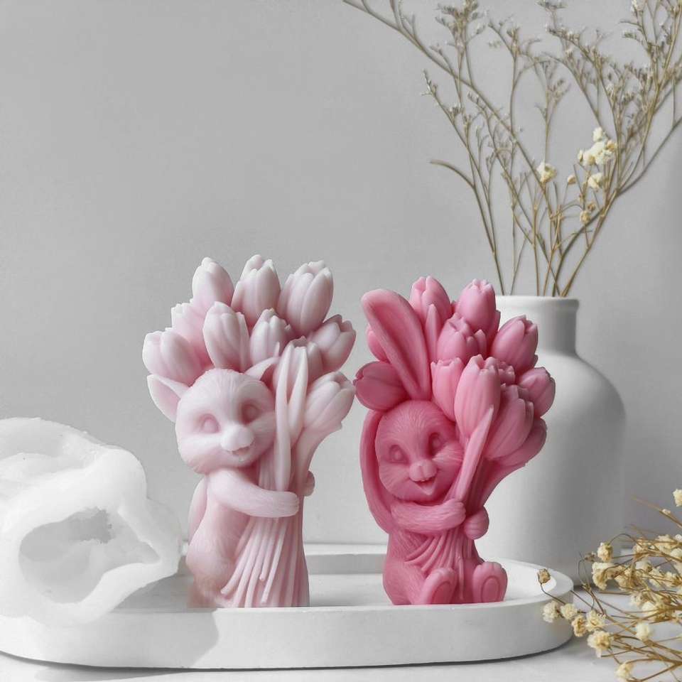 Tulip Bouquet Aromatherapy Candle Animal Bridal Bouquet Gypsum Candle Silicone Mold