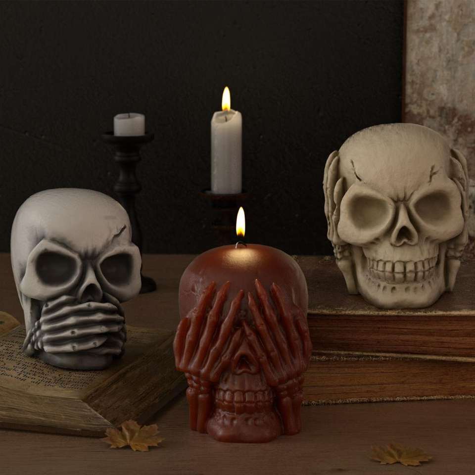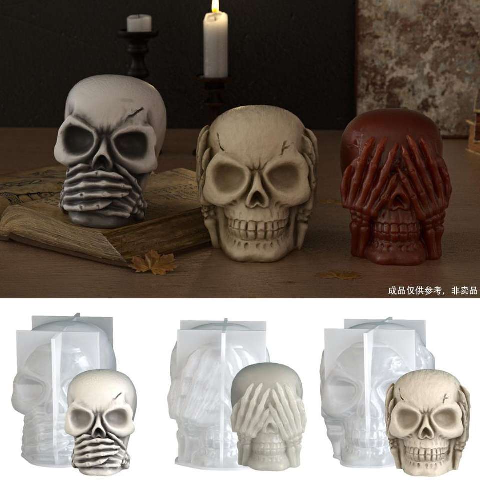 M54973 Les oreilles n'écoutent pas vos yeux, ne regardent pas votre bouche, ne disent pas crâne bougie bijoux bougie de gypse moule en silicone