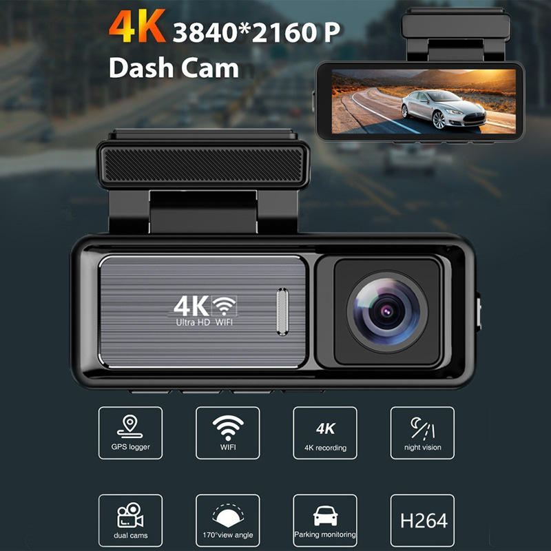 Enregistreur de conduite de voiture M6 4K + 1080P double objectif avec cordon d'alimentation USB Vision nocturne connecter le téléphone via WIFI caméra de bord noire