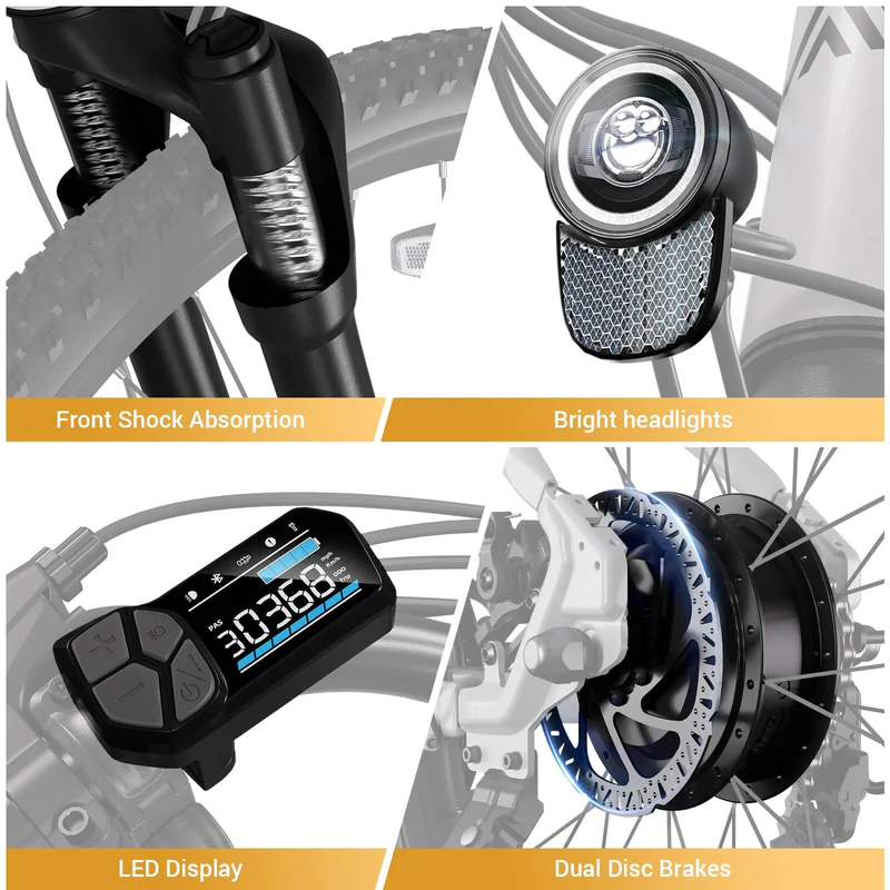 Puissance du moteur 750 W: Avec un puissant moteur de 750W, le vélo électrique offre une forte accélération et peut gérer différents terrains, y compris des pentes allant jusqu'à 25°.