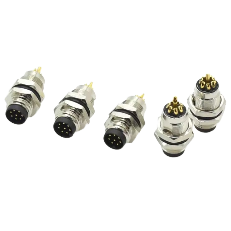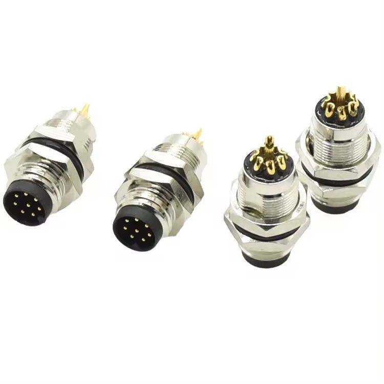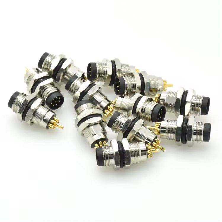 Connecteur mâle à 8 broches circulaire étanche pour capteur de signal industriel à montage sur panneau arrière