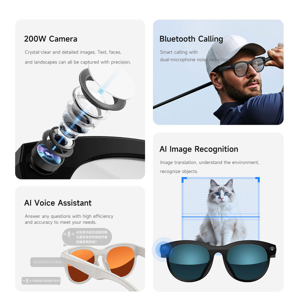 Lunettes Intelligentes M88 AI : Reconnaissance d'Objets, Traducteur, Lecture Musicale, Appels Bluetooth, Connexion Wi-Fi, Caméra – Hommes et Femmes