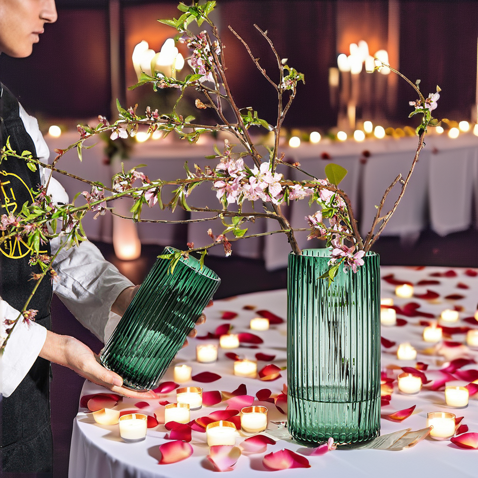 Vase de table rond en verre transparent au design moderne M932 CASTLE, centre de table de mariage, décoration d'intérieur, écologique et léger