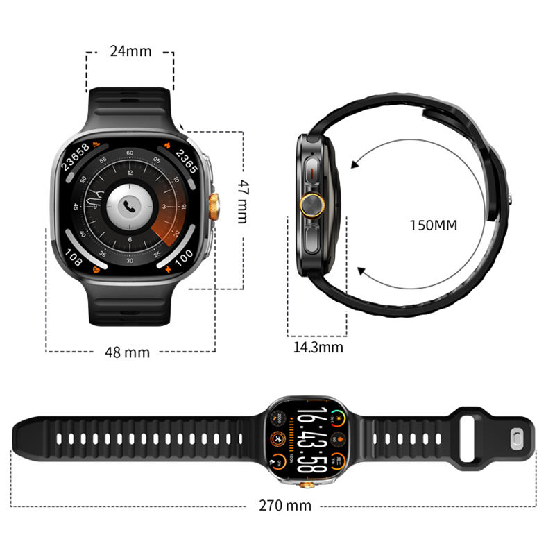 Appel vidéo, Calendrier, Chronographe, Lecteur de musique, Navigation gps, Répondre à un appel, Pisteur fitness, Rappel de message, Podomètre, Sommeil, Composez un numéro, Fréquence cardiaque Tracker