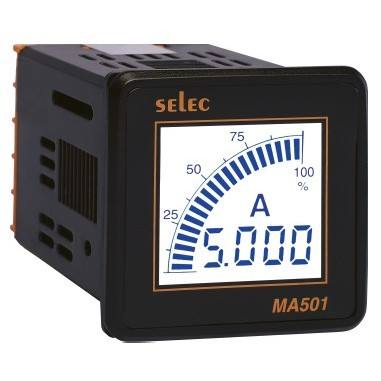 Ampèremètre numérique avec affichage à barres MA501; monophasé; plage de mesure 50 mA - 5 A; True RMS; 48x48 mm