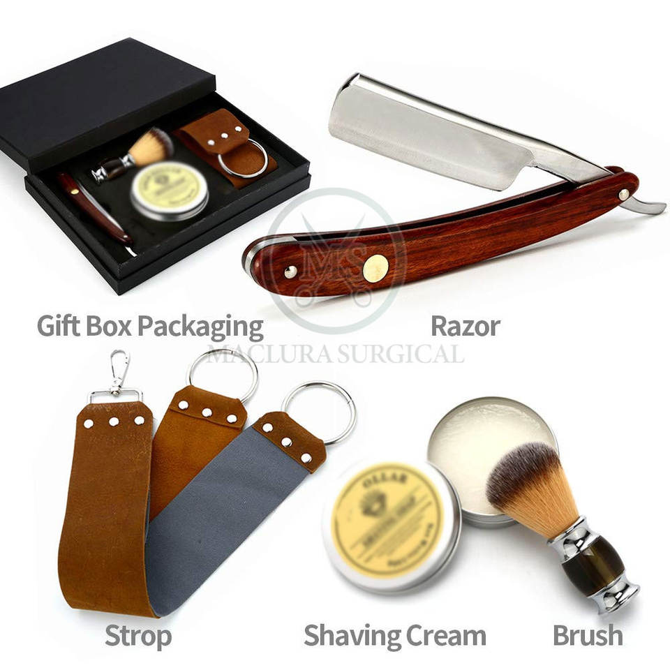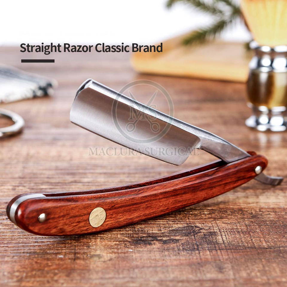 MACLURA SURGICAL Rasoir de barbier classique Poignée en bois pour le rasage humide traditionnel Visage Corps Utilisation de haute qualité