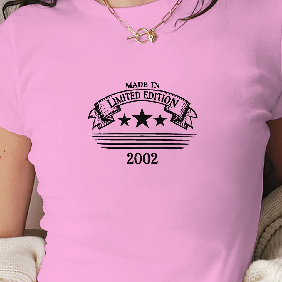 T-shirt court à la mode Y2K pour femmes en édition limitée 2002 tricoté avec un motif imprimé unique