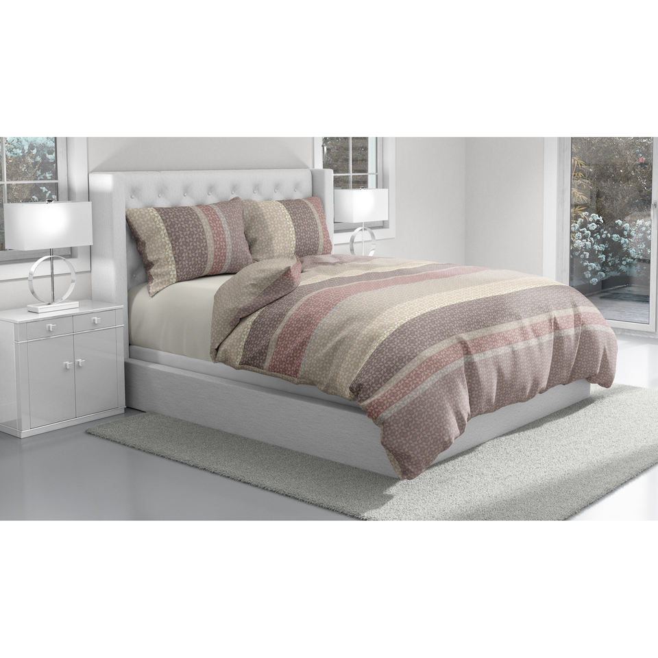 MADRID 100% Cotton Double Duvet Cover Set French Size 30x30 76x56 Pigment Printed Harlequin Ros
