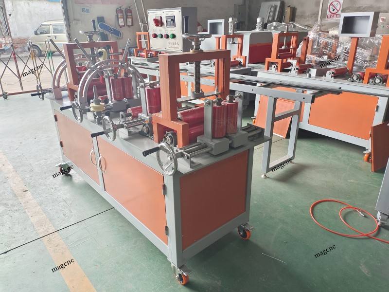 Machine de laminage de film pour profilés de fenêtres et de portes en aluminium à rupture de pont thermique, contrôlée par PLC, MAG APL-300, moteur pour profilés irréguliers