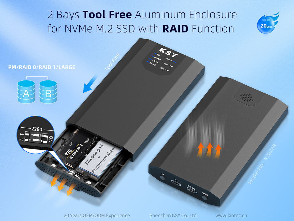 Nom du produit:2 baies Type C En Aluminium RAID NVMe M.2 SSD Boîtier