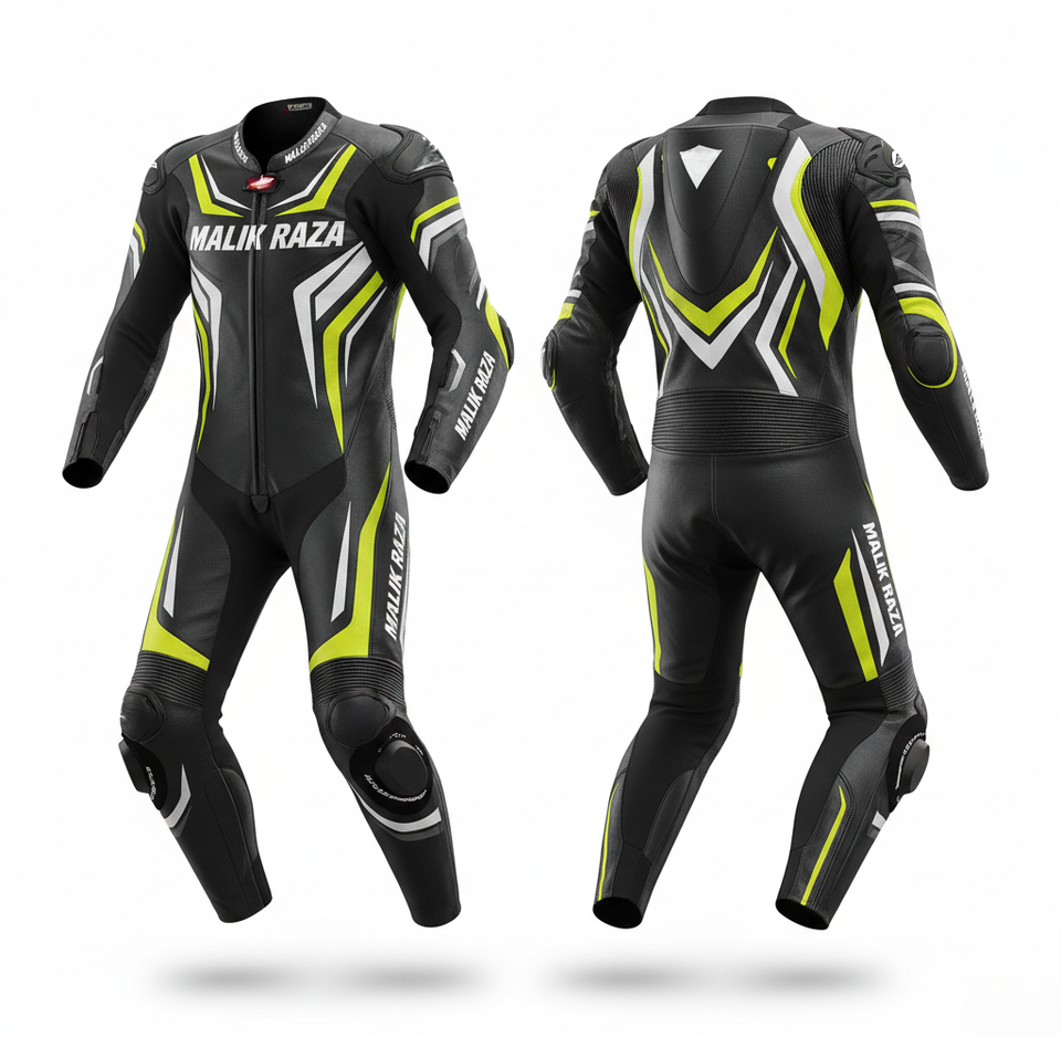 Combinaison de course MALIK RAZA à triple couture | Panneaux extensibles renforcés en aramide | 2026 Sécurité Professionnelle Sur Mesure