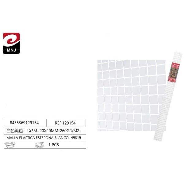 Grillage plastique ESTEPONA de haute qualité, cadre en plastique blanc, clôture enduite 49319, treillis rectangulaire 1x3m-20x20mm-260gr/m2