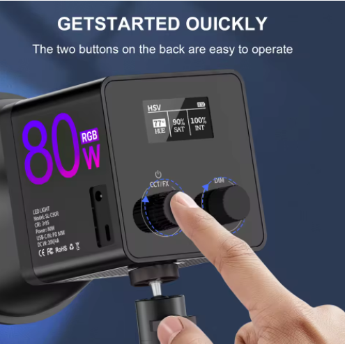 MAMEN Éclairage vidéo 80W RGB COB, 14,8 V rechargeable, 2 500–6 500 K, pour studio photo et live, batterie 60 min, mémoire, panneau tactile