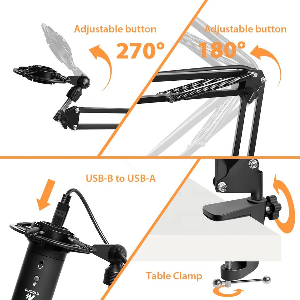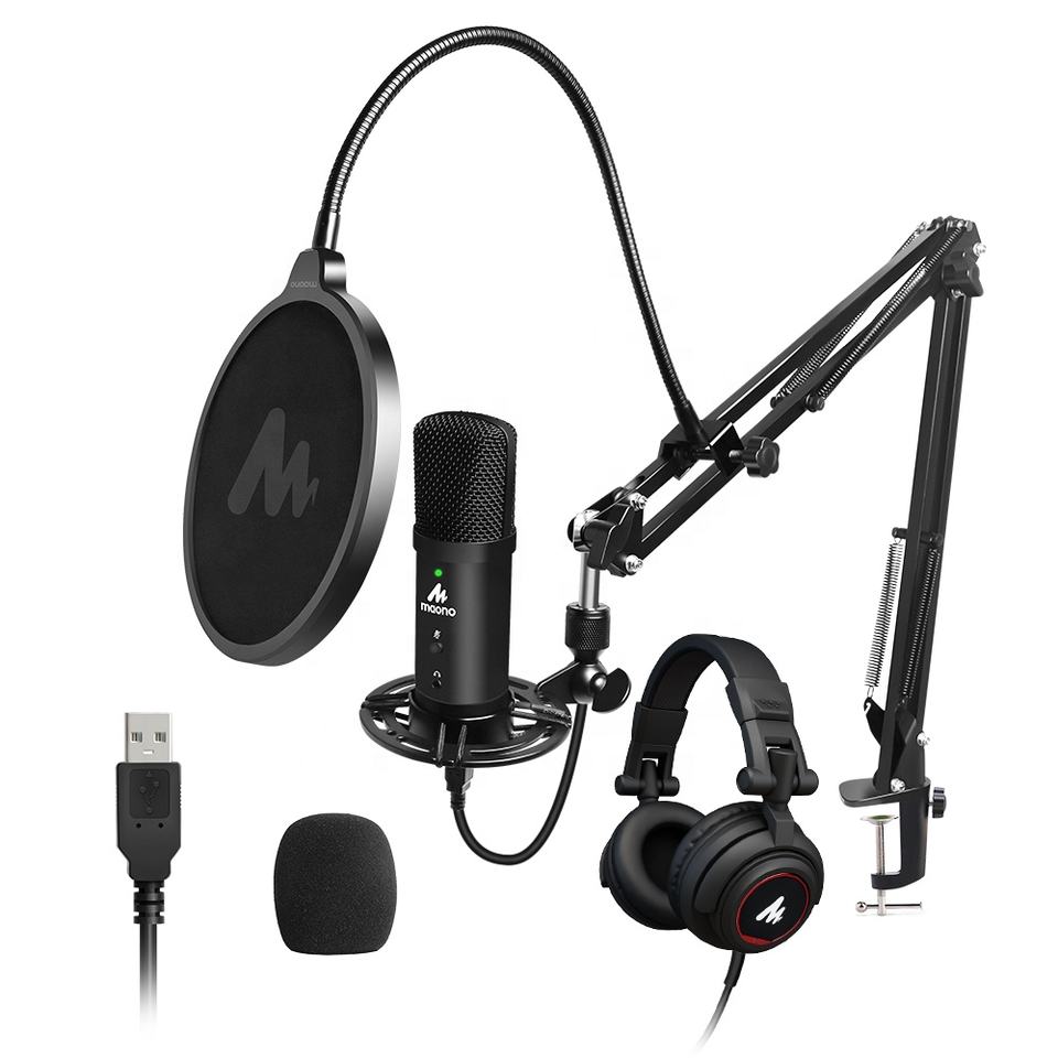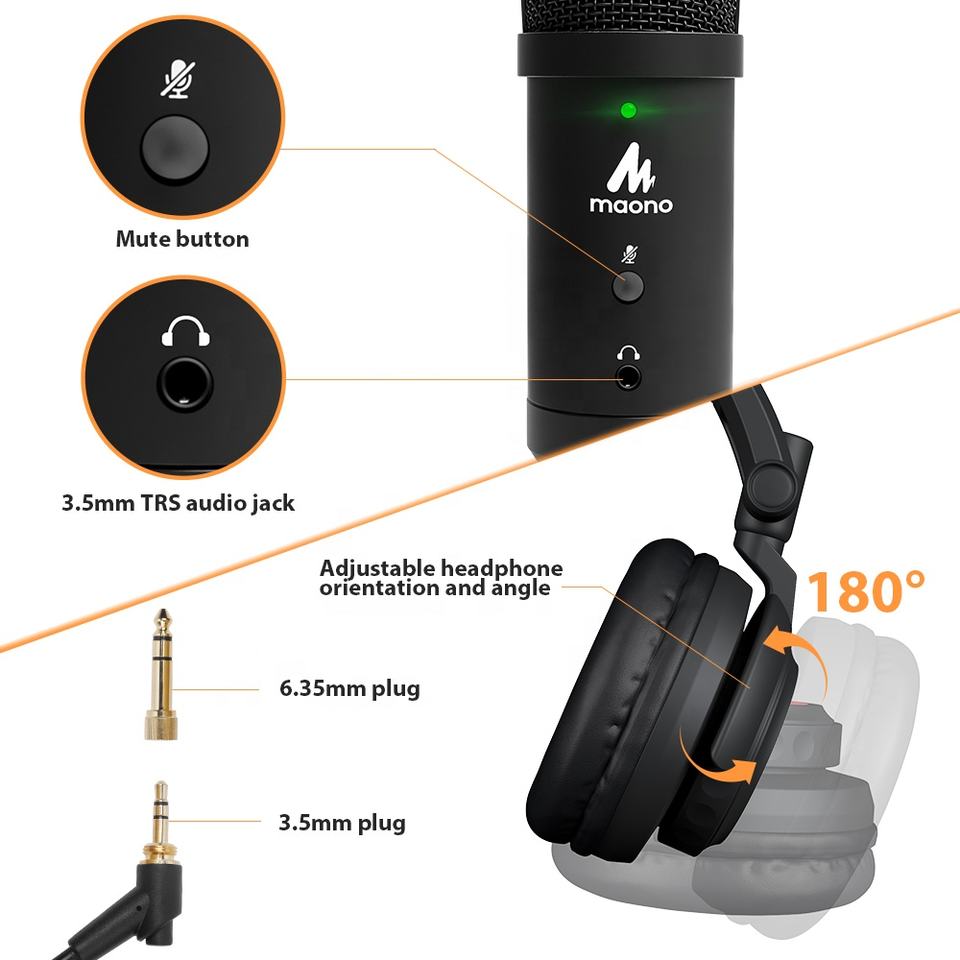 MAONO Studio Microphone USB Avec Moniteur En temps Réel Casque POUR L'enregistrement En Direct Avec Ordinateur Podcast Kit Micro