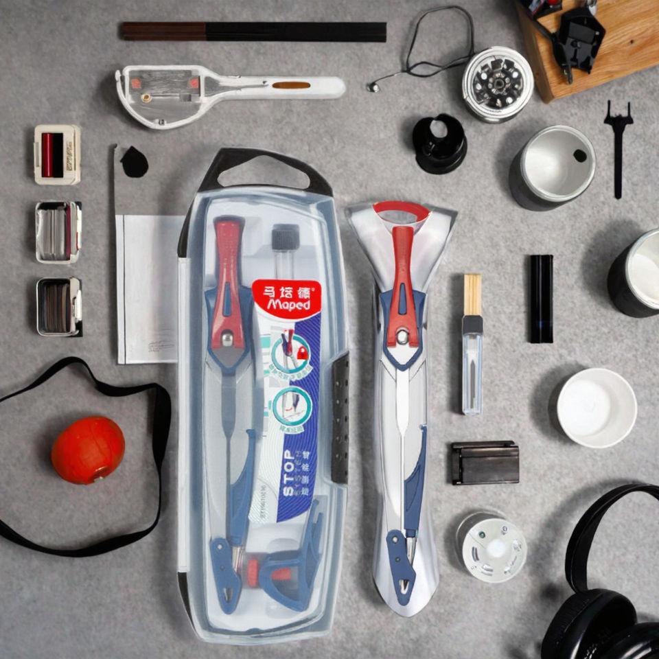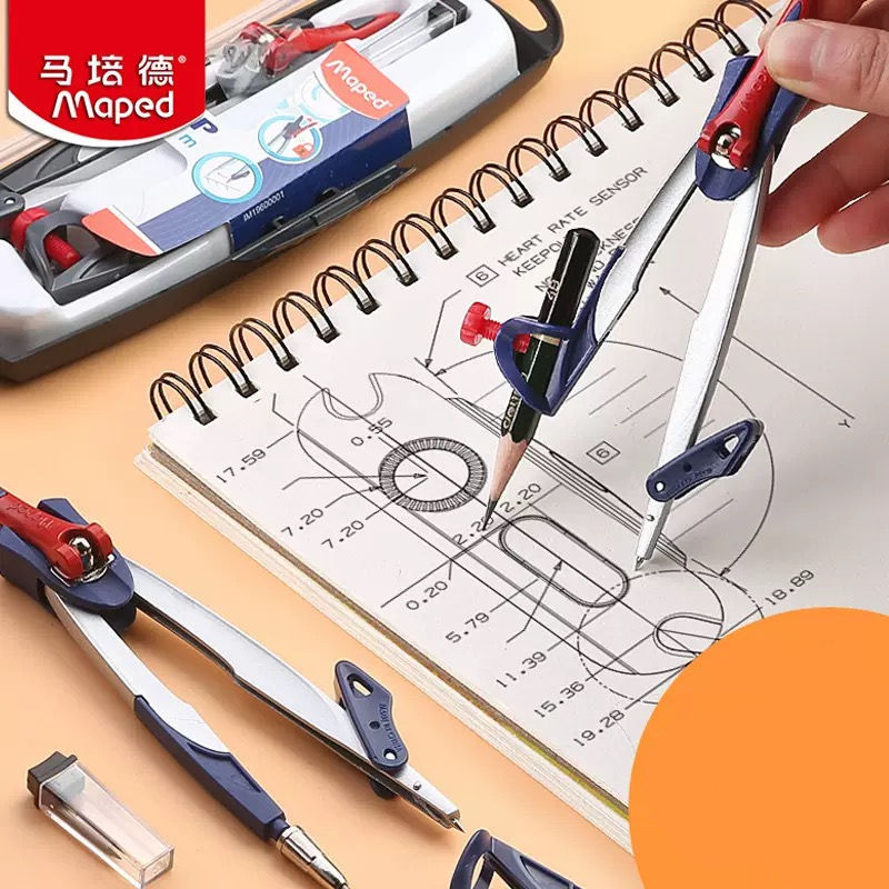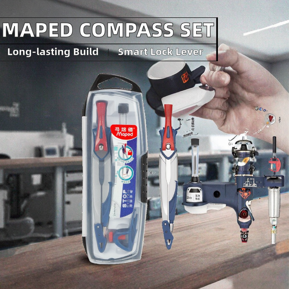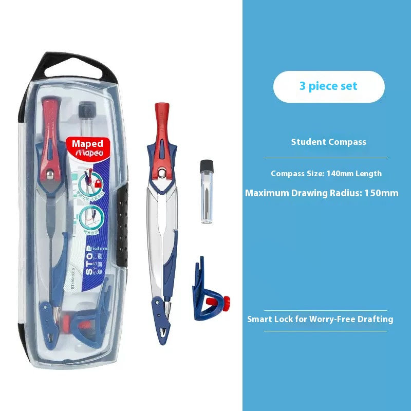 MAPED Ensemble de boussole pour étudiant 3 pièces avec levier de verrouillage intelligent Ensemble de boussole de construction en métal pour étudiants