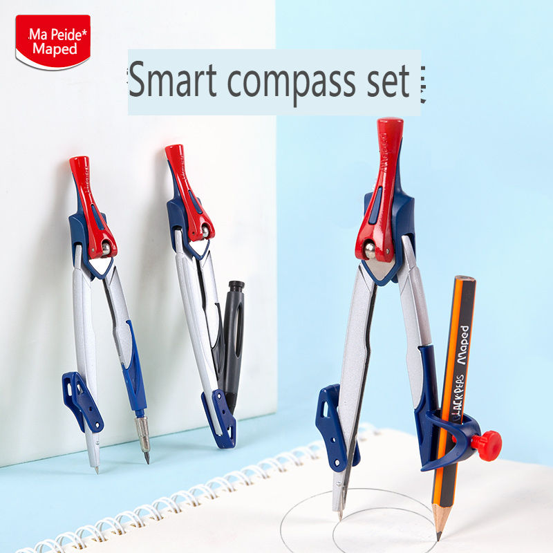 Boussole intelligente MAPED avec levier de verrouillage intelligent, en métal, pour étudiants, avec crayon en bois, fabriquée en Chine