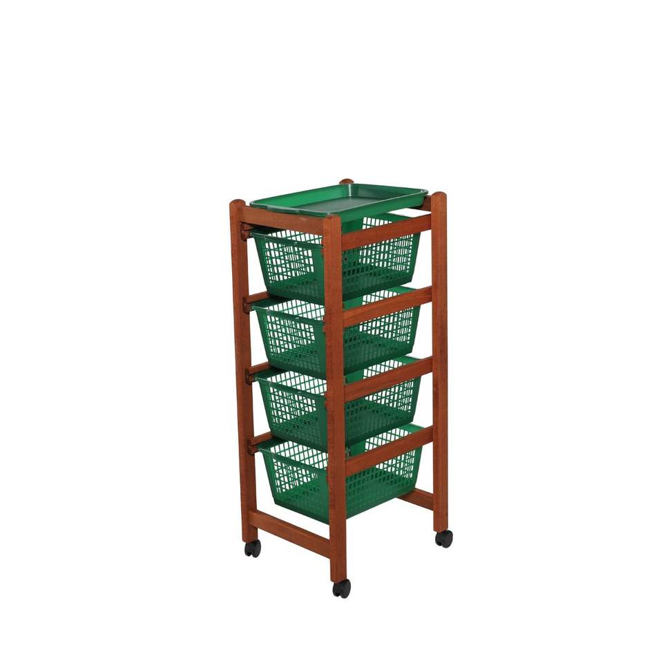 Chariot de rangement MASLEGNO MAS121 en bois de hêtre massif de qualité supérieure, plateau amovible, 4 paniers en plastique de qualité alimentaire - Design moderne et polyvalent