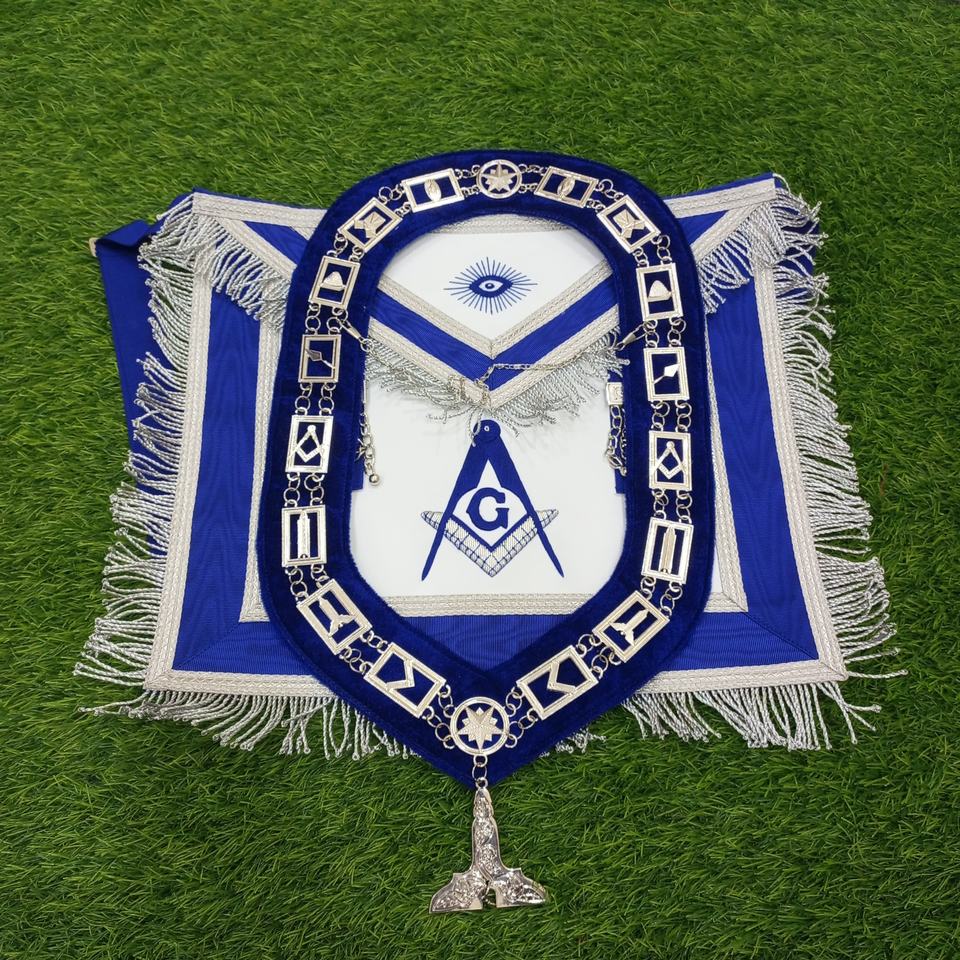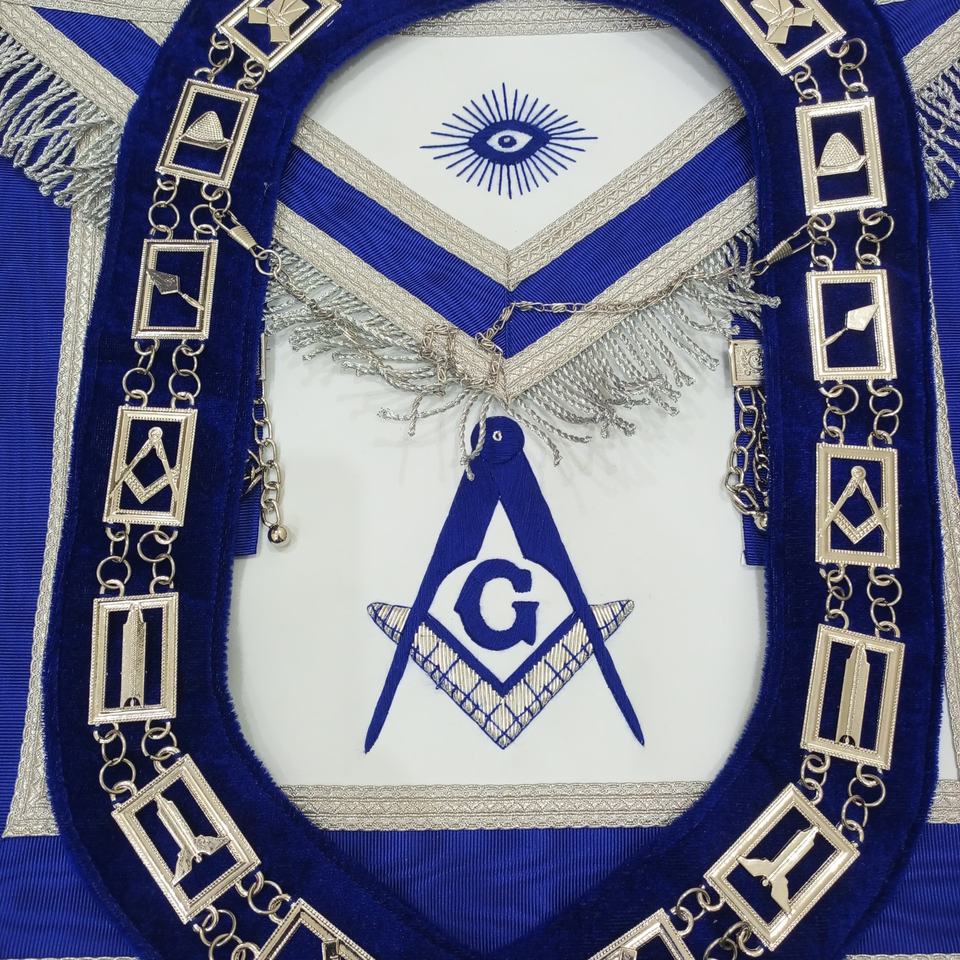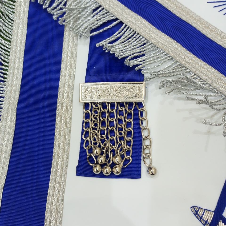 apron:MASTER MASON APRON WITH METAL CHAIN COLLAR AND JEWEL SILVER