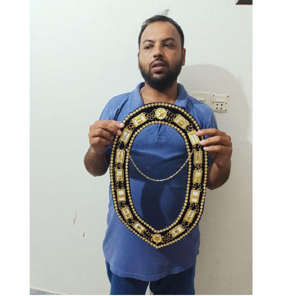 MASONIC REGALIA BLUE LODGE MASTER MASON DRESS METAL CHAIN COLLAR BLUE VELVET CHAIN COLLAR SET rose MARK MEMBER DEGREE MASTER
