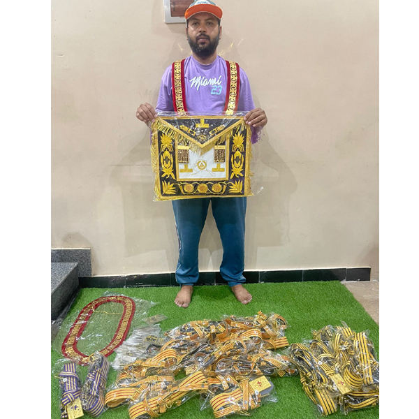 MASONIC REGALIA DEPUTY GRAND MASTER 100% LAMBSKIN APRON WITH COLLAR, CUFFS & JEWEL FULLY HAND EMBROIDERED DEPUTY GRAND MASTER